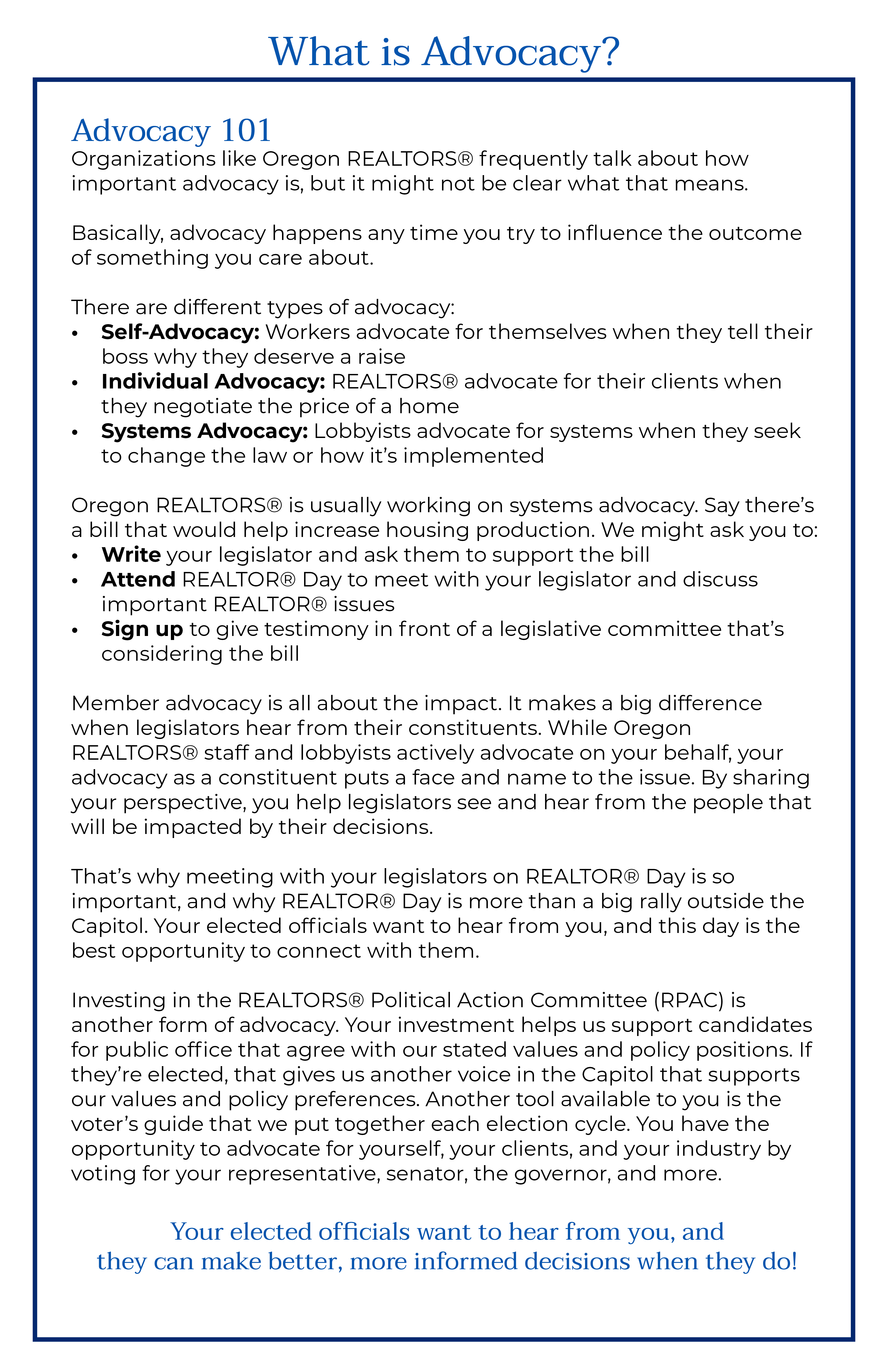 REALTORS® from across Oregon will gather in the big tent on the Capitol Mall to meet with our state elected leaders and show our strong support for policies that promote homeownership, protect private property rights, and encourage vibrant communities.